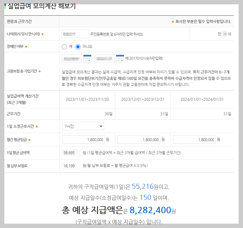 ● 실업급여 모의계산기